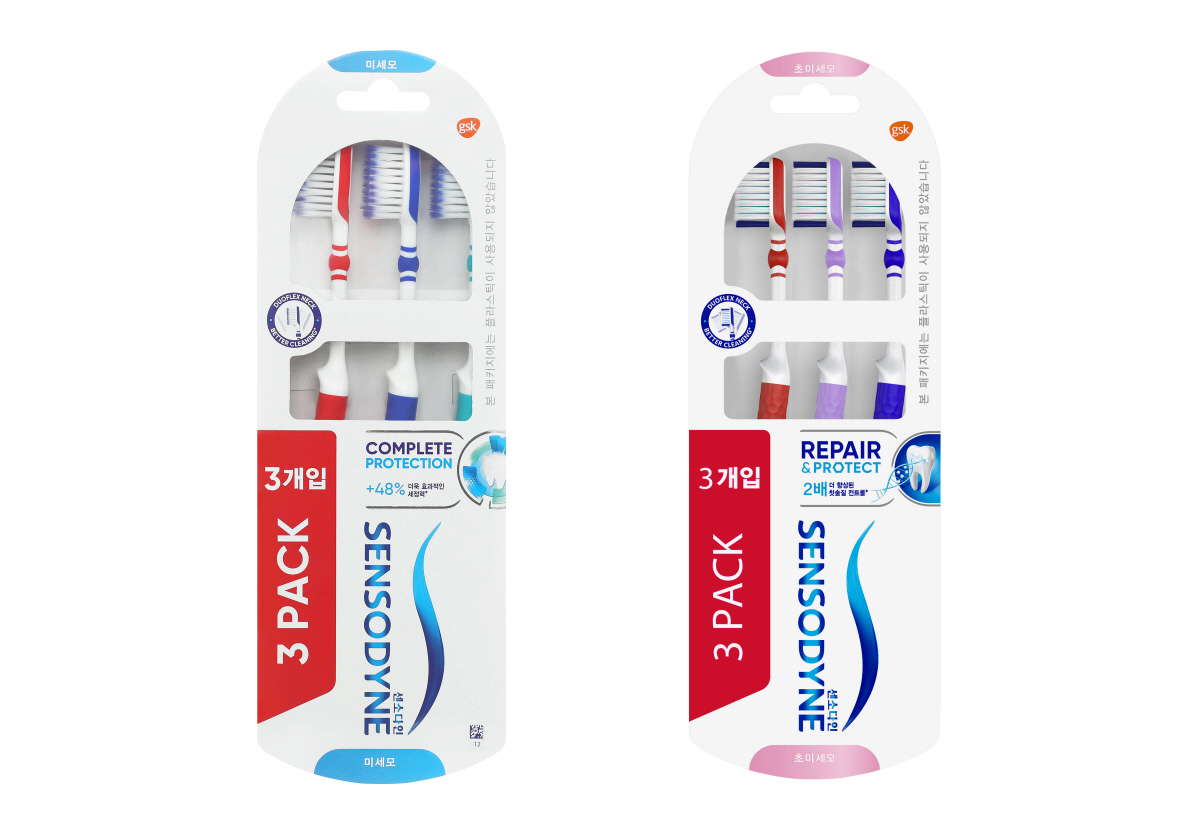 '센소다인 컴플리트 프로텍션 칫솔'은 끝이 가느다란 바깥 미세모와 끝이 둥근 안쪽 칫솔모로 구성된 복합 미세모로 효과적인 세정이 가능하다. '센소다인 리페어 & 프로텍트 칫솔'은 커브형으로 커팅된 이중 초미세모로 일반 일자형 칫솔 비교 실험 대비, 2배 더 향상된 칫솔질 컨트롤로 깨끗하고 부드럽게 세정하는 제품이다.