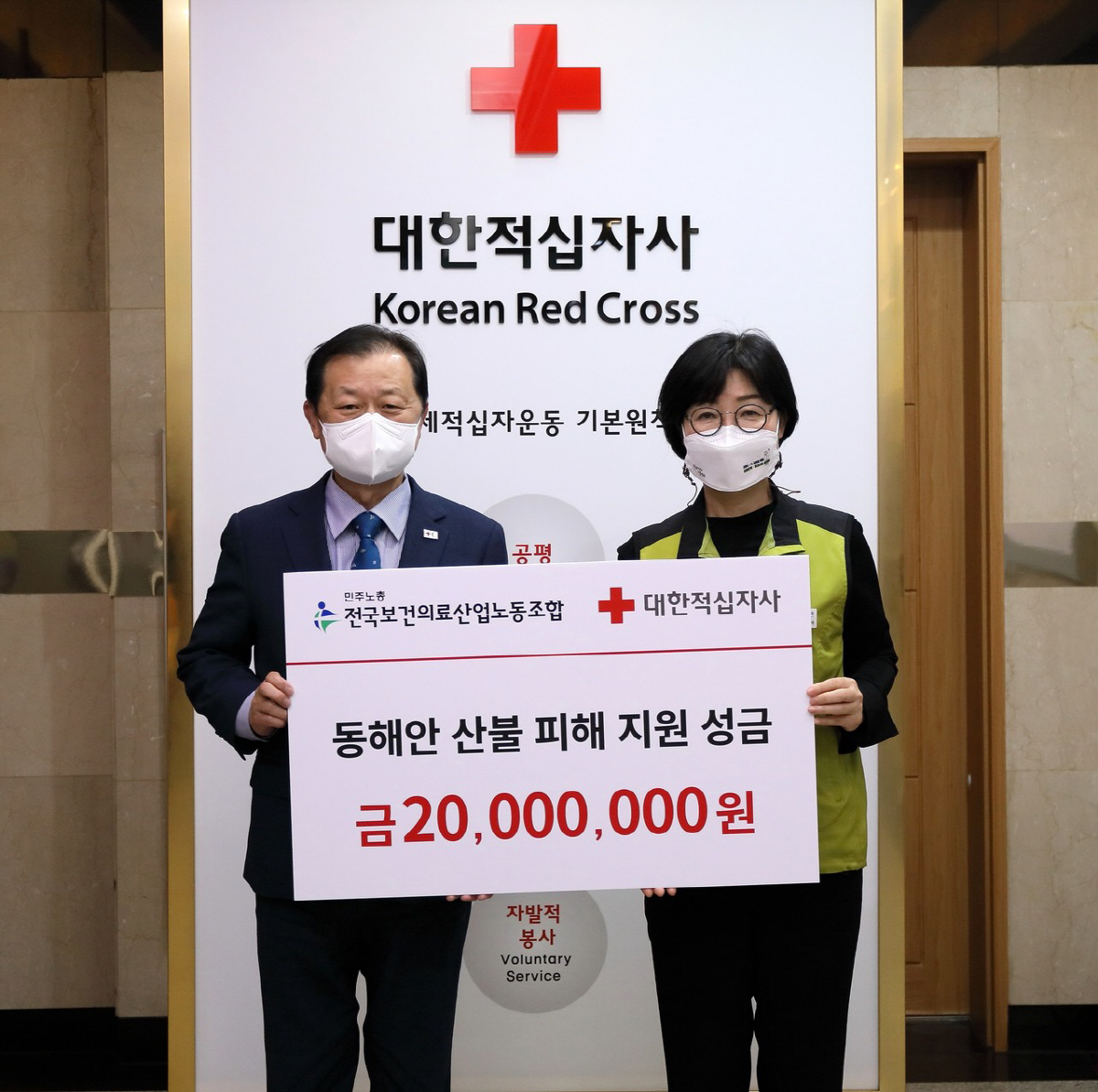 전국보건의료산업노동조합(위원장 나순자, 이하 보건의료노조)는 22일 동해안 산불 이재민과 피해지역 복구 지원을 위해 성금 2000만원을 대한적십자사(회장 신희영, 이하 적십자)에 전달했다.