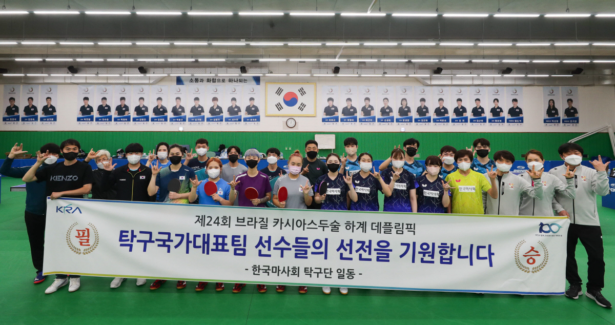 데블림픽 탁구팀 박재형 감독은 "프로리그로 바쁜 와중에도 달려와 준 마사회 탁구단과 그간 힘든 훈련을 견뎌준 선수들에게 감사한 마음을 전한다"며 "좋은 성적으로 국민들에게 보답할 수 있도록 이번 대회 최선을 다하겠다"고 출전 각오를 밝혔다.