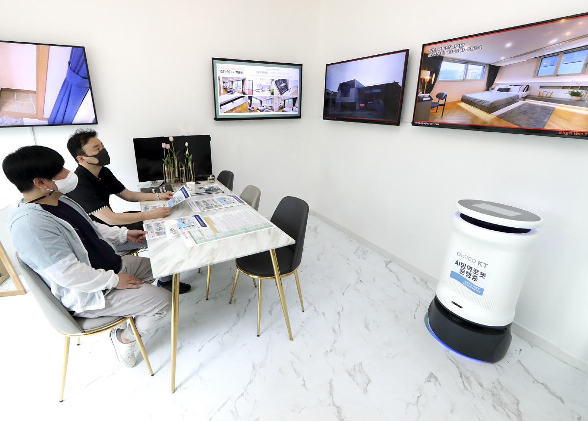 KT가 최신 방역기술과 AI 로봇을 결합한 'KT AI 방역로봇'을 닥터부동산홍보관에 시범 도입했다고 14일 밝혔다.