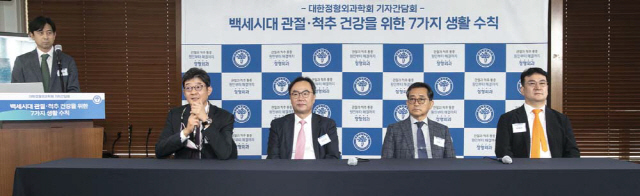 이날 대한정형외과학회는 '백세시대 관절·척추 건강을 위한 7가지 생활수칙'을 발표했다. ▲관절과 척추가 회복할 수 있도록 충분한 휴식 취하기 ▲적절한 체중 유지하기 ▲내 발에 맞는 편한 신발 신기 ▲체중부하 운동을 포함한 활동적인 생활 실천하기 ▲가정에서 낙상 위험 요소 제거하기 ▲충분한 양의 비타민D 복용하기 ▲관절 및 척추 통증은 참지 말고 정형외과 전문의에게 검진받기 등이다.