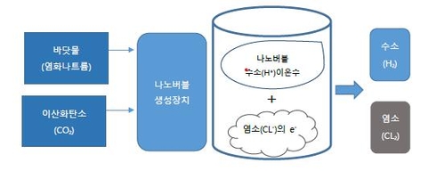 화우나노텍은 "이번에 개발한 나노버블 생성장치는 바닷물과 이산화탄소를 나노버블화하고 염소에서 나온 전자(e-)를 결합하는 간단한 장치"라며 "나노버블 용해 방식은 대량의 수소 생산 및 이산화탄소 저감 효과가 있다"고 설명했다.
