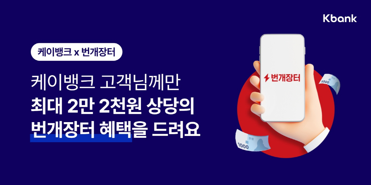 케이뱅크가 중고거래 플랫폼 번개장터와 손잡고 최대 2만2000원 혜택을 제공하는 프로모션을 진행한다고 16일 밝혔다.