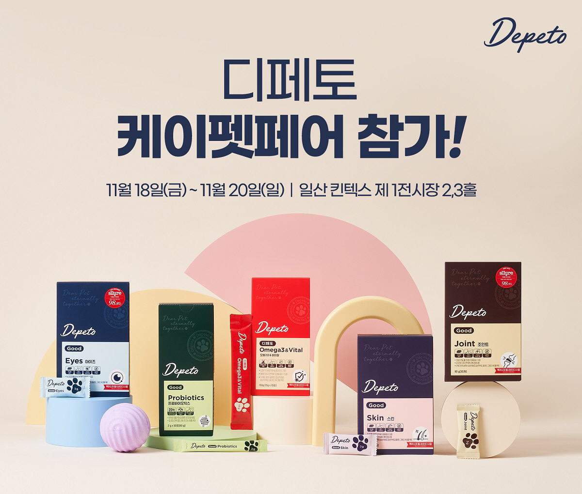 이번 박람회에서는 얼루어 매거진의 품평단 설문에서 각각 98.8%, 98.9%의 만족도를 얻은 '아이즈'와 '조인트'는 물론 영양제 및 간식으로 구성된 디페토 전 제품을 최대 54% 할인된 가격에 선보인다.