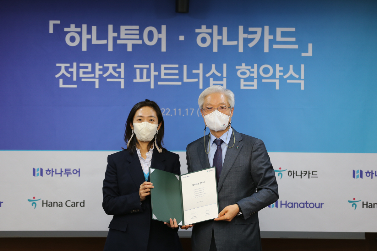 하나카드는 하나투어와 해외여행과 관련한 상품, 서비스 등 다양한 분야에 걸쳐 전략적인 업무 협업을 위한 MOU를 체결했다고 18일 밝혔다.