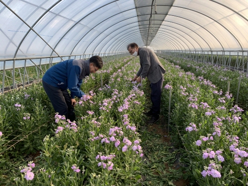 전남 해남군에서는 꽃봉오리마다 향기를 가득 품은 스토크 꽃 수확이 한창이다.