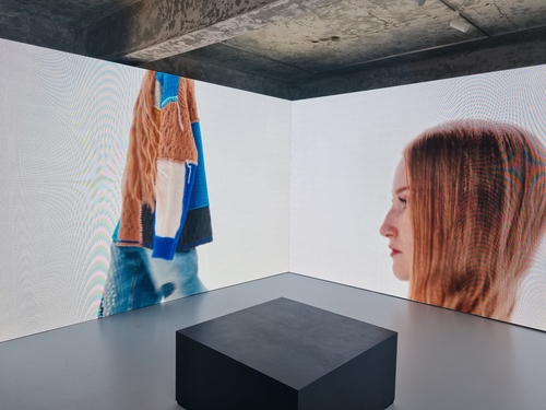인공지능(AI) 전시는 자라와 아더에러를 상징하는 젠더리스 AI 2명이 마주보고 대화하며 '시작과 끝'을 주제로 대화를 나누는 내용으로 전개됐다.