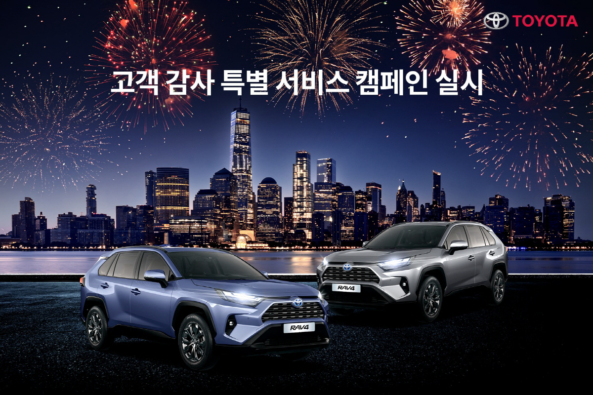 토요타코리아는 컨슈머인사이트 2022년 자동차 기획조사 수입차 부문 '판매서비스 만족도 1위' 달성을 기념해 오는 31일까지 고객감사 서비스 캠페인을 실시한다고 12일 밝혔다.