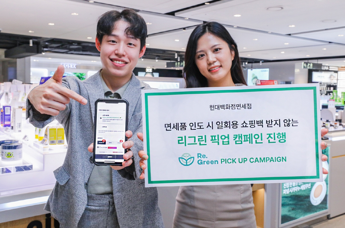 현대백화점면세점이 온라인몰인 현대백화점인터넷면세점에서 면세품 구매 시 일회용 쇼핑백 수령 여부를 고객이 직접 선택하는 '리그린 픽업'(Re.Green Pick-Up) 캠페인을 시행한다. 지난해 9월 시범 운영 이후 고객의 의견, 개선점 등을 반영해 본격 시행에 나선 것이다.