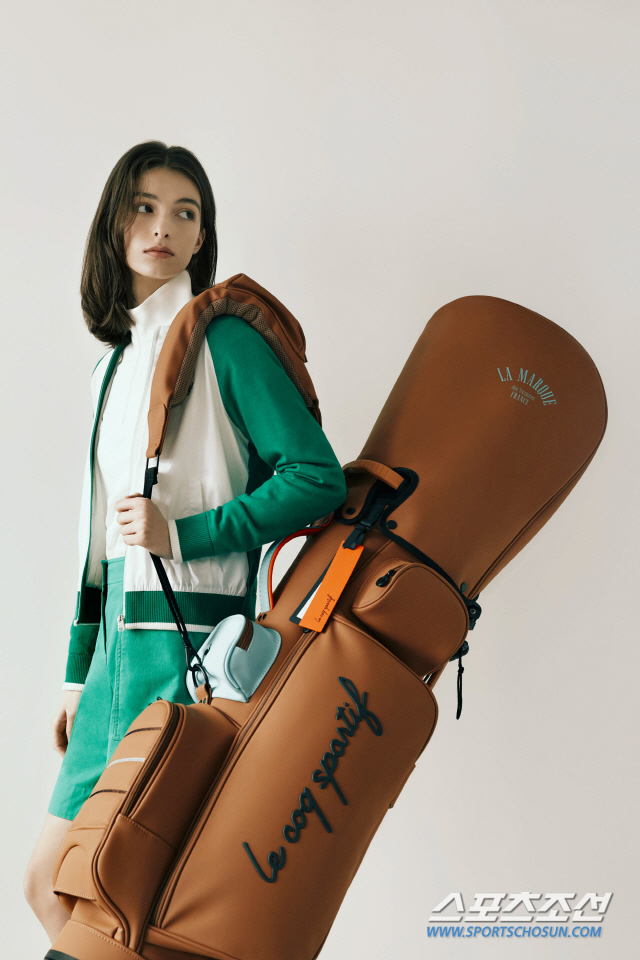 또 다른 주력제품은 골프백 중 가장 기본이 되는 캐디백이다. 캠페인에 등장하는 '뉴컬러 스탠드 캐디백'은 프렌치 감성에 걸맞게 아이보리, 라이트블루, 그린 등 정제된 컬러 배색과 로고 자수 포인트로 한눈에 보기에도 고급스러운 감성을 엿볼 수 있다. 물론, 골프백 본연의 수납력과 기능성도 갖췄다. 5분할 구조의 투입구를 분리해 장비끼리 엉킴 없이 안전한 보관이 가능하고, 바닥에는 미끄럼 방지 기능을 더해 가파른 코스에서도 안전하다. 다양한 용도의 소지품을 분할 수납할 수 있는 공간을 마련했고, 어깨끈에 쿠션재를 보강해 맸을 때의 편안함을 더한다.