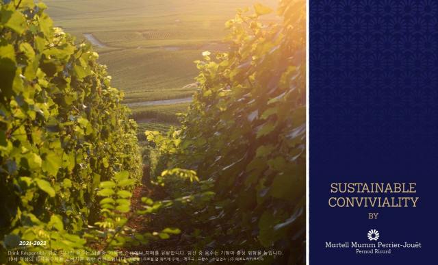 글로벌 와인회사 페르노리카 그룹이 마르텔-멈-페리에 주에(MMPJ)의 지속가능성 및 책임경영 성과를 담은 2021-22 CSR 보고서를 발간했다고 30일 밝혔다. 마르텔-멈-페리에 주에는 페르노리카 그룹의 계열사로, 프레스티지 코냑 브랜드인 '마르텔(Martell)'과 프레스티지 샴페인 '페리에 주에(Perrier-Jouet)', 축하의 상징인 '멈(Mumm)' 샴페인, 프라이빗 컬렉션 'RSRV' 샴페인을 생산하고 있다.