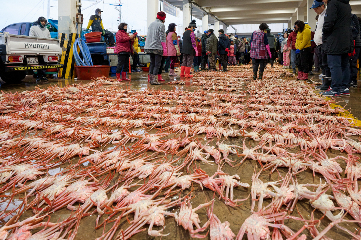align='left" bgcolor='#ffffff" class='caption'>◇울진 후포항 어판장에서는 연근해에서 잡아 온 울진대게와 붉은대게의 경매가 진행, 아침마다 활기가 넘친다. 사진제공=지엔씨21