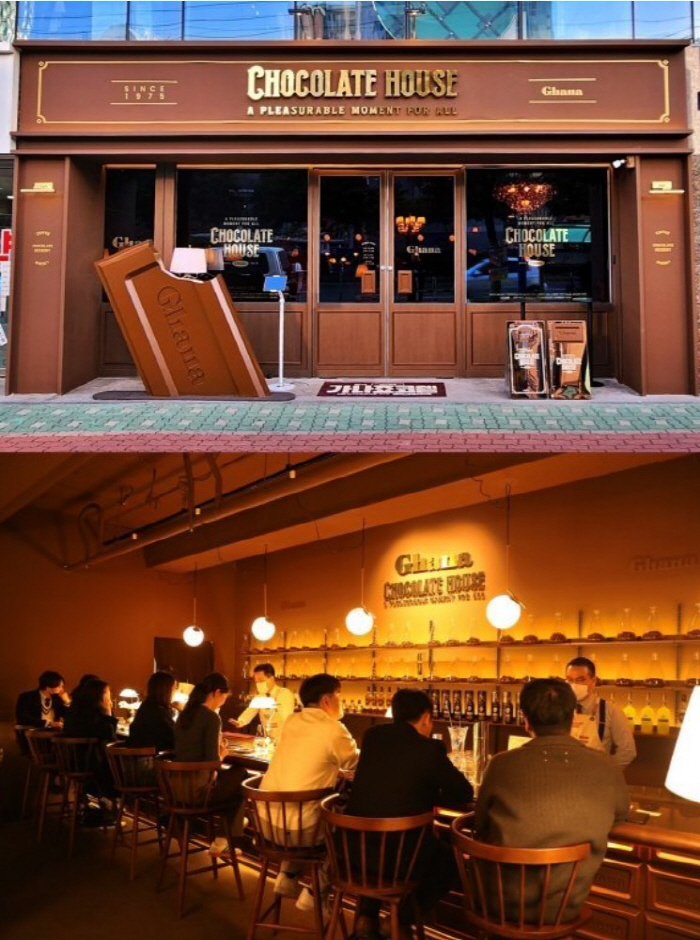 가나 초콜릿 하우스에서는 초콜릿 활용 디저트 뿐 아니라 다양한 체험 프로그램을 통해 초콜릿에 대한 즐거운 경험을 제공받을 수 있다. 저녁 시간대에 운영되는 몰트바는 더부즈와 롯데칠성음료의 협업으로 초콜릿과 어울리는 싱글몰트 위스키, 칵테일 등 음료가 제공된다.