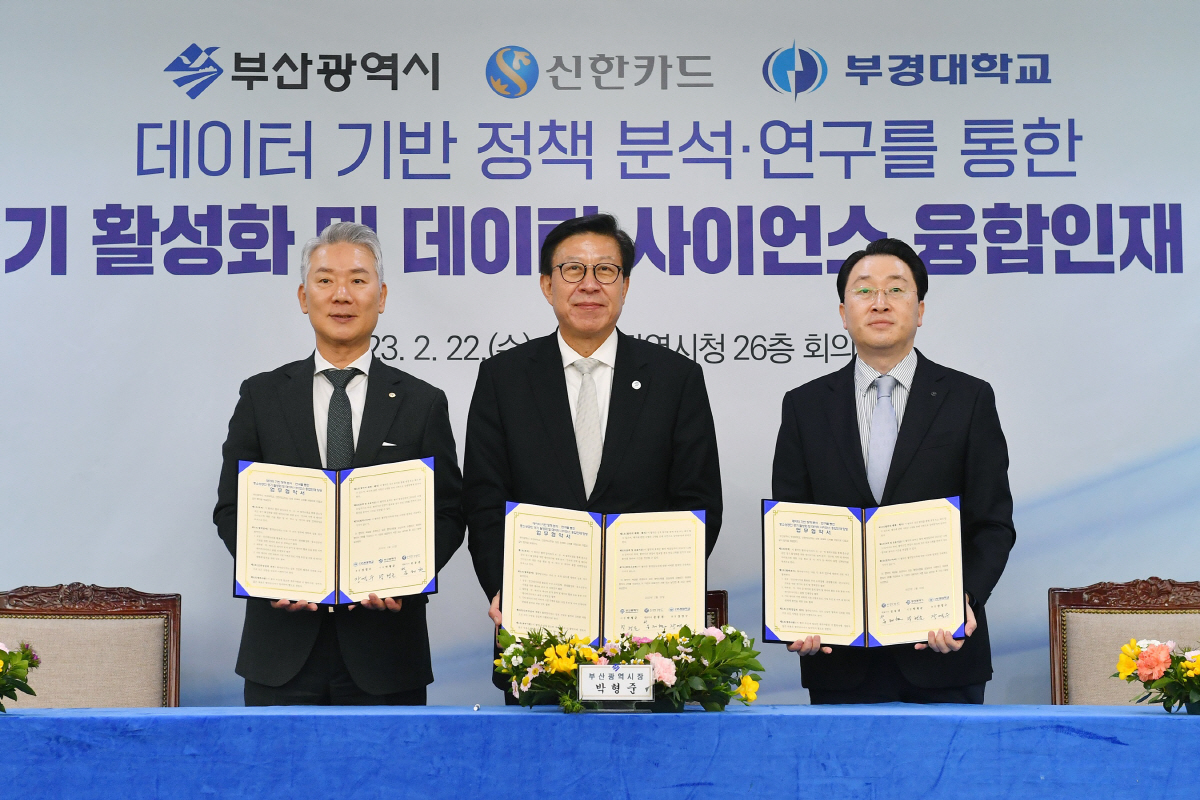 또 신한카드, 부산시, 부경대는 데이터 사이언스 융합 인재 양성을 위한 지·산·학 프로젝트를 진행한다. 신한카드와 부산시는 대학에서 쉽게 접하기 어려운 공공분야 및 카드 데이터를 활용할 수 있도록 부경대에 데이터를 제공, 분석에 참여한다. 도출된 결과는 정책 연구에 반영할 예정이다.