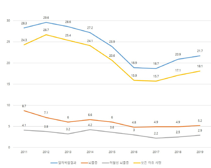 인구 고령화 등으로 우리나라 뇌졸중 환자는 꾸준히 증가하고 있다. 통계청에 따르면 뇌졸중은 암, 심장질환, 폐렴에 이어 한국인 사망원인 4위로 꼽히고 있다. 그래서 뇌졸중은 '침묵의 살인자'라고도 불린다.