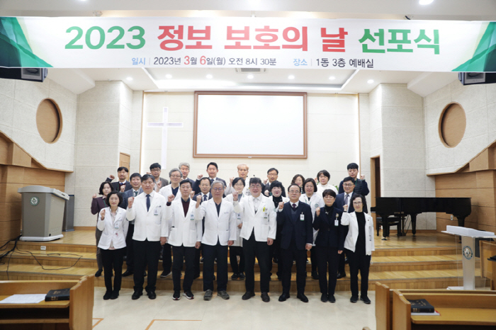 이날 선포식에 참여한 교직원은 ▲공개된 장소에서 개인정보 대화 하지 않기 ▲환자 개인정보 공용전산망 혹은 공개장소에 노출하지 않기 ▲컴퓨터 로그인 암호설정 및 환자 정보 출력물은 반드시 파쇄하기 ▲개인정보 포함된 서류와 저장매체 보관시에는 비밀번호 설정 및 시건장치로 관리하기 ▲아이디와 비밀 타인과 공유하지 않기 등에 대한 서약을 진행했다.