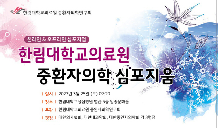 이번 심포지엄은 중환자의학을 주제로 한림대성심병원 하상욱 교수, 김진혁 교수(이상 응급의학과), 신장내과 이형석 교수, 한림대강남성심병원 호흡기내과 심윤수 교수, 강동성심병원 호흡기내과 박소영 교수 등 여러 의료진이 강의를 진행하며 진료 현장에서 필요한 최신 의료 지식을 나누는 자리다.