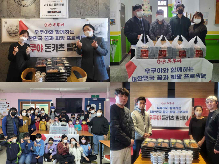 '우쿠야'는 지난해 10월 제주법원점과 아동복지 시설에 기부를 시작으로 반년 동안 가락점, 충난서산점, 여수교동점, 한남점, 서구점 패밀리와 함께 '돈카츠 릴레이'를 통해 보육원, 노인복지시설, 복지센터 등에 180인분의 '돈카츠 도시락'을 전달했다.