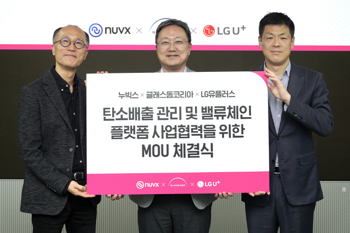 LG유플러스는 탄소배출량 감축 등 다양한 글로벌 환경 규제에 효과적으로 대응할 수 있는 솔루션을 제공해 제조기업의 원활한 상품 수출을 지원한다고 10일 밝혔다. 이를 위해 회사는 밸류체인 플랫폼 사업자 누빅스, 탄소배출 관리 솔루션 기업 글래스돔코리아와 업무협약을 체결했다.