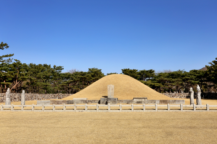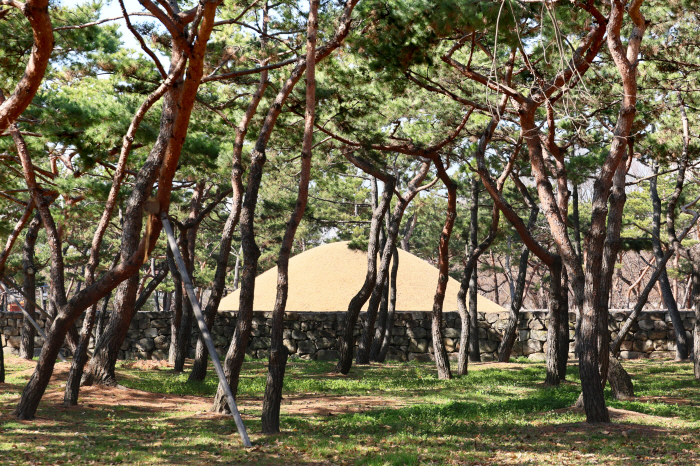 수릉원은 왕가의 품위가 느껴지는 생태공원이다. 김수로왕과 허황옥의 만남을 테마로 조성됐다. 동쪽의 산책로는 김수로왕을 기념하는 공간이다. '수로왕을 위하여'라는 제목을 갖고 있으니 김수로왕의 발걸음을 따라 걷는 느낌으로 여유롭게 걷는다. 구실잣밤나무, 상수리나무 등 곧게 뻗은 나무들이 서 있고 서쪽의 산책로는 대성동 고분군을 지나 허 왕후를 위한 공간이 나타난다.
