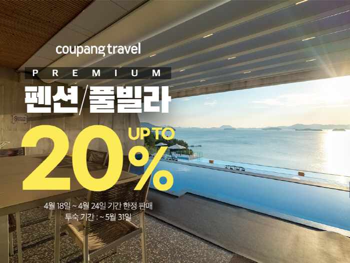 쿠팡의 여행상품 전문관 '쿠팡트래블'이 프리미엄 펜션 및 풀빌라를 오는 24일까지 최대 20% 할인 특가에 선보인다고 19일 밝혔다.