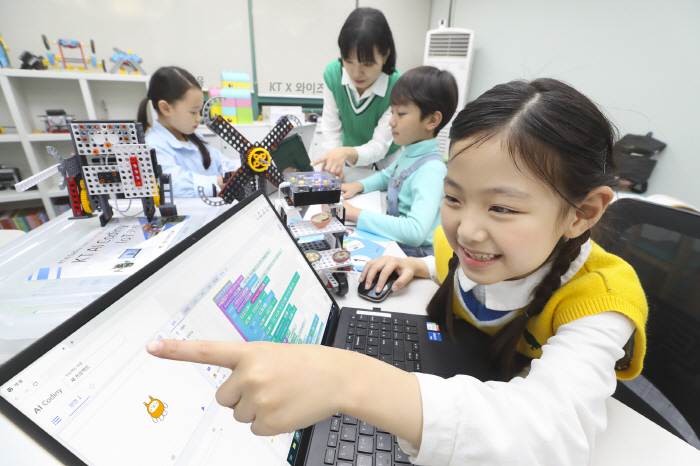 KT 'AI 코디니'는 복잡하고 어려운 기존 코딩 방식 대신 블록 형태로 쌓아가며 AI 코딩을 잘 모르는 사용자들도 AI 코딩의 원리를 쉽게 이해 할 수 있도록 만든 AI 교육 플랫폼이다. 초등학생이나 중학생 등 코딩 입문자들도 마우스 클릭만으로 AI 서비스를 구현할 수 있다. 'KT AI IoT 키트'는 AI 하우스, AI 팩토리, AI 비서, 로봇 등 다양한 기기들을 직접 제작하고 작동할 수 있도록 하는 자율 조립형 도구 모음이다.