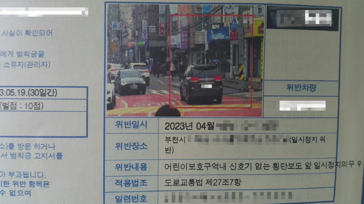 사연의 주인공 A씨는 "사진이 찍힌 각도를 보니 줌을 당겨서 사진을 찍은 것 같다. 신호등이 없는 어린이 보호구역 스쿨존 횡단보도는 일시정지 후 운행하라."며 범칙금 고지서 사진을 함께 올렸다.