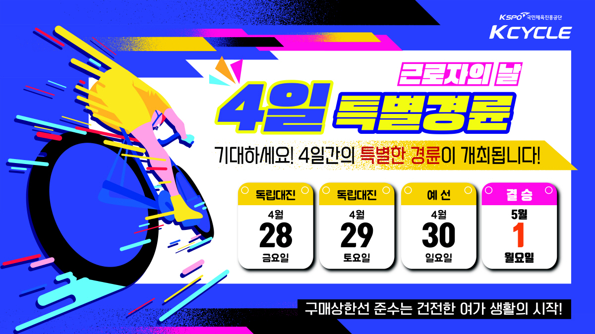 국민체육진흥공단 경륜경정총괄본부가 5월 1일 근로자의 날을 맞아 특별경륜을 개최한다고 밝혔다. 따라서 이번 17회차 경륜은 오는 28일 금요일부터 다음달 1일 월요일까지 4일간 연속으로 열리게 된다.