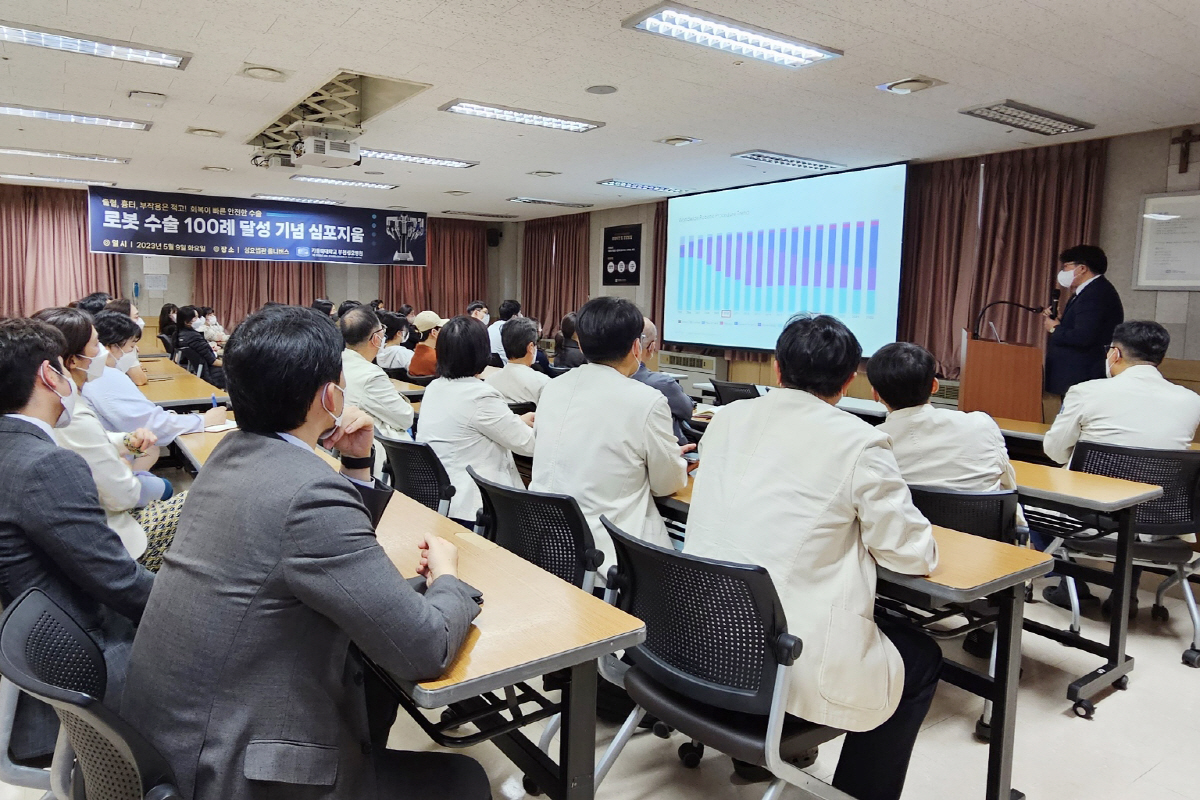 가톨릭대학교 부천성모병원이 제4세대 다빈치 Xi 시스템을 도입 후 단기간 100례 돌파 기념으로 최신 로봇수술 술기에 관한 심포지엄을 부천성모병원 옴니버스에서 지난 9일 개최했다.