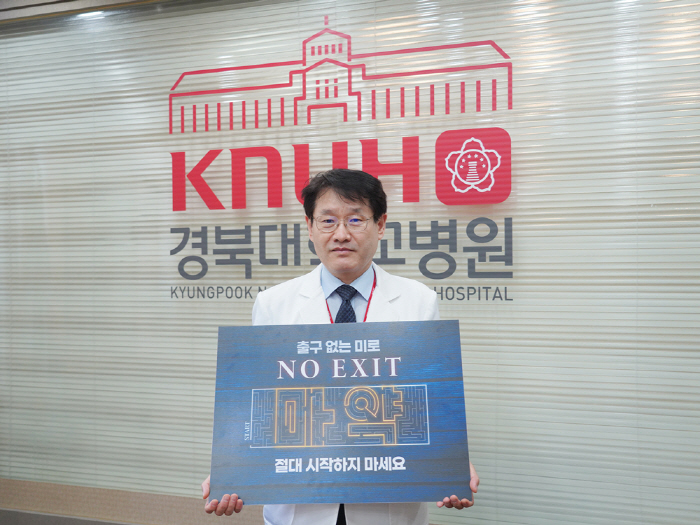 경북대학교병원 김용림 병원장이 16일 마약범죄예방 캠페인 'NO EXIT'에 참여했다.