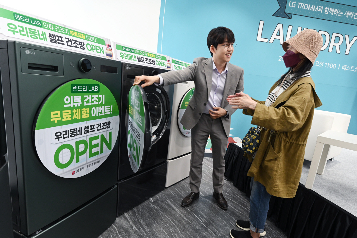 이와 함께 LG전자는 차별화된 '6모션 건조'로 큰 호응을 얻고 있는 트롬 건조기를 고객들이 직접 체험하는 공간인 '우리동네 셀프 건조방'을 LG 베스트샵에 마련했다.
