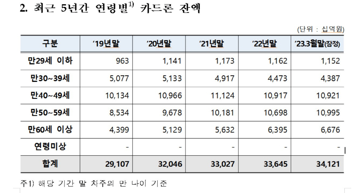 올해 1분기 카드론 잔액은 34조원대로 50~60대를 위주로 급격히 늘었다.