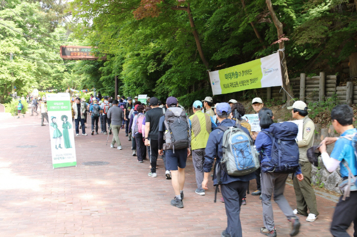 탐방객들의 안전한 산행을 위해 국립공원공단과 동국제약 임직원들은 산행안전수칙과 구급함 위치가 표시된 지도를 배포했다.