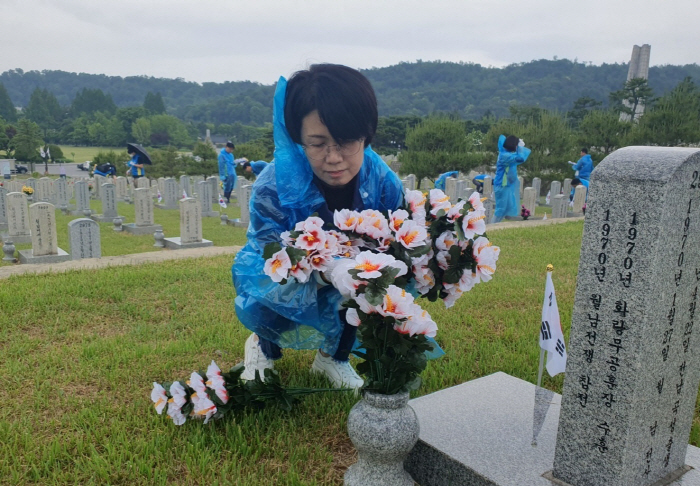 신한은행이 지난 27일 서울시 동작구 국립서울현충원(이하 현충원)에서 묘역 환경정비 자원봉사 활동을 진행했다.