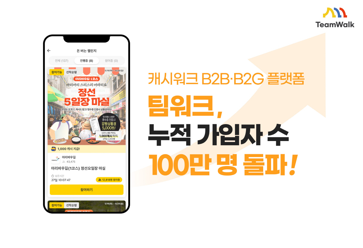 넛지헬스케어는 캐시워크의 B2B·B2G 플랫폼 '팀워크'가 출시 1년여 만에 누적 가입자 수 100만명을 돌파했다고 30일 밝혔다.