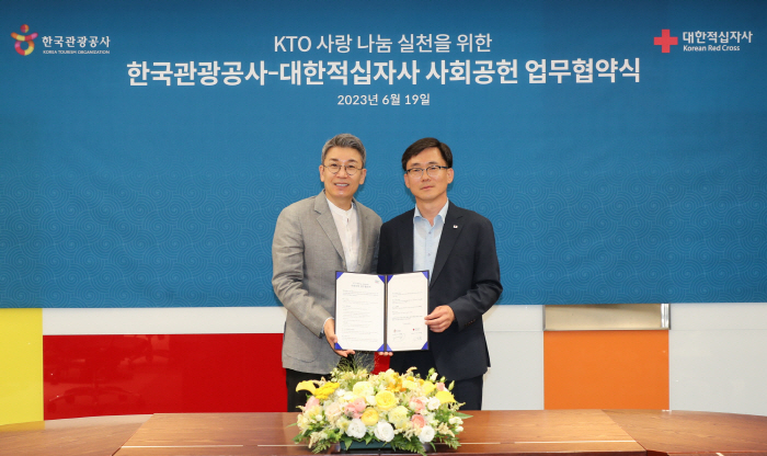 한국관광공사가 대한적십자사와 ESG 경영을 위한 사회공헌 실천 업무협약을 체결했다.