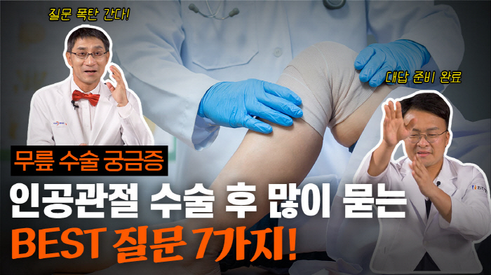 지난 7일에 이어 2탄으로 공개되는 이번 영상에서 이수찬 대표원장은 인공관절수술 후 남아있는 통증정도와 완화법, 붓는 다리 해결법, 무릎에서 나는 소리의 실체, 수술 후 걸을 수 있는 시기, 감각이 돌아오는데 걸리는 시간 등 평소 무릎관절염 환자들이 인공관절수술 후 가장 많이 묻는 7가지 질문을 선별해 상세히 알려줄 예정이다.