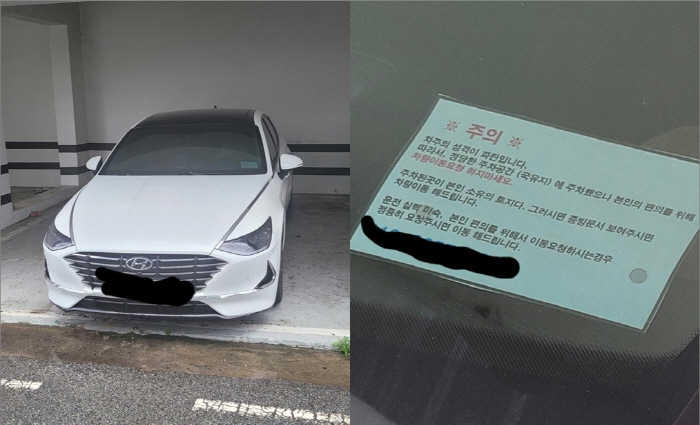 해당 경고문에는 "차주의 성격이 파탄이다. 따라서 정당한 주차공간(국유지)에 주차했으나 본인의 편의를 위해 차량이동 요청하지 마라."고 적혀 있었다.