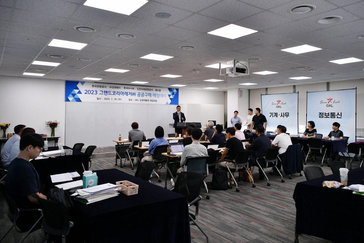 그랜드코리아레저(GKL)가 19일 서울 강남구 삼성동 GKL 인재개발원 대강당에서 '2023 그랜드코리아레저 공공구매 매칭데이'를 개최했다. 공공구매 매칭데이는 다양한 중소기업 신제품 전시, 구매상담회를 통해 공공기관과 중소기업의 교류 증진과 공공판로 확대를 마련하기 위한 기획됐다.