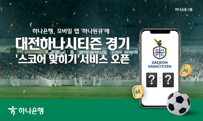 하나은행이 '하나원큐'를 통해 대전하나시티즌 경기 '스코어 맞히기' 서비스를 오픈했다.