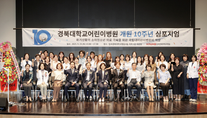 경북대학교어린이병원은 지난달 23일 칠곡경북대학교병원 6동 지하1층 대강당에서 개원 10주년을 맞아 기념식을 개최하며 '위기상황의 소아청소년 의료 극복을 위한 국립대어린이병원의 역할'을 주제로 심포지엄을 진행했다.