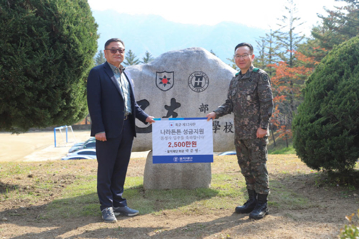 박준영 을지재단 회장이 25일 강원도 인제군 육군 12사단 을지부대를 찾아 방위성금 2500만원을 기부했다.