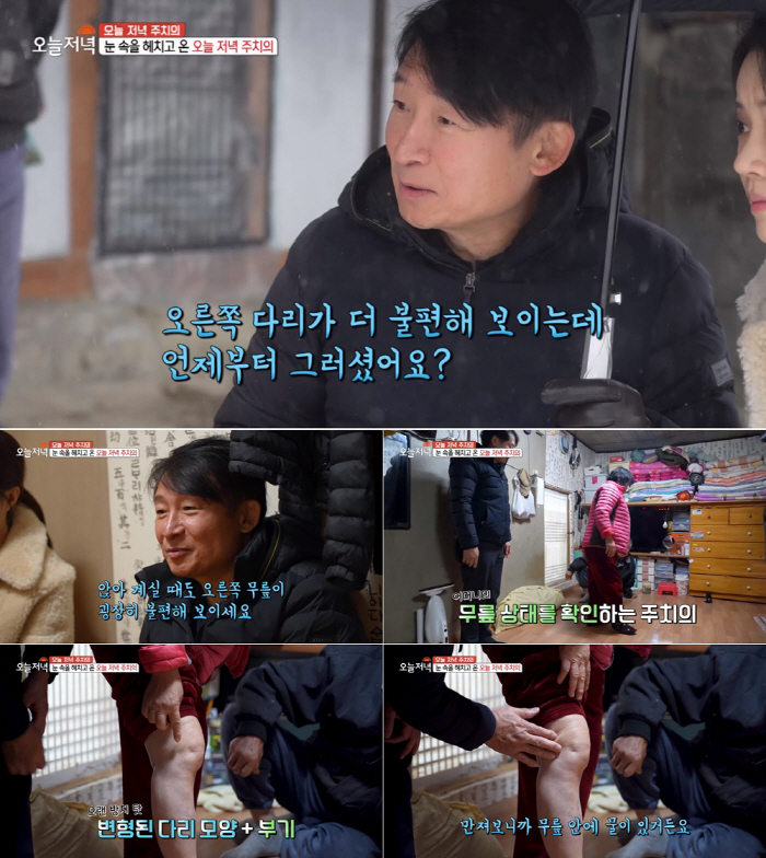 무릎 상태를 확인한 서 원장은 "뼈끼리 닿아서 부딪히니까 힘드신 것 같다. 관절이 많이 변형이 되어 있고, 만져 보니 무릎 안에 물이 차 있다"고 설명해 생각보다 심각한 상태였음을 알 수 있었다.