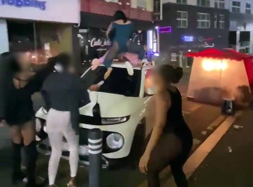 A씨의 지인이 이를 목격하고 촬영한 당시 영상을 보면 한 외국인 여성은 A씨 차량 보닛 위로 올라가 몸을 흔들고 있고, 다른 여성 서너명이 환호성을 지르며 이를 촬영하고 있다.