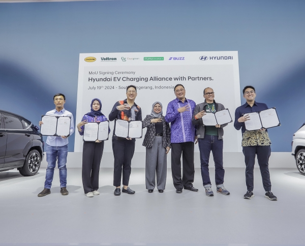 현대자동차가 19일‘가이킨도 인도네시아 국제 오토 쇼 2024’에서 인도네시아 민간 충전 사업자 6개 업체와 ‘현대 EV 충전 얼라이언스’를 구축했다.