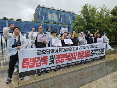 (광주=연합뉴스) 천정인 기자 = 금호타이어 광주공장에서 발생한 지게차 사망 사고를 수사 중인 경찰이 공장장 등 6명을 형사처벌 대상으로 삼았다.