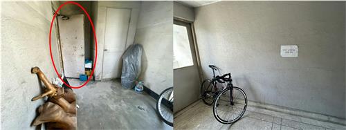 계단 방화문도 활짝 열려 있었다. 방화문을 열어두면 화재 시 계단을 타고 불길과 연기가 빠르게 퍼질 수 있어서 항상 닫아둬야 한다.