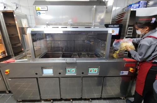 (서울=연합뉴스) 김윤구 기자 = 롯데리아 운영사 롯데GRS는 자동 튀김 조리 로봇 '보글봇'을 서울대입구역점에 처음으로 도입하고 연내 2개 매장에 추가 배치한다고 14일 밝혔다.