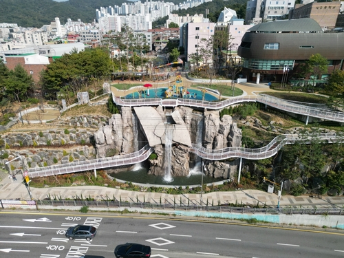 공원 상부와 하부를 연결하는 155m의 보행데크에서는 주민들이 부담 없이 산책하며, 폭포수를 가까이서 느끼고 체험할 수 있다.