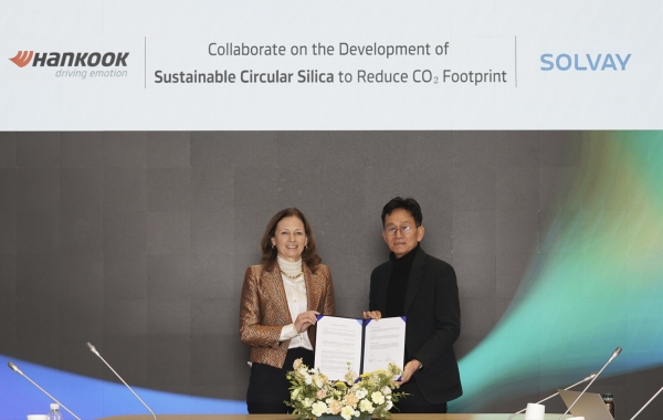 한국타이어앤테크놀로지㈜(이하 한국타이어)가 솔베이 실리카(Solvay Silica)와 산업 폐기물 모래,광산 폐기물(Industrial Waste sand and Mining waste)을 이용한 새로운 ‘순환 실리카(Circular Silica)’ 개발에 관한 업무협약을 체결했다.